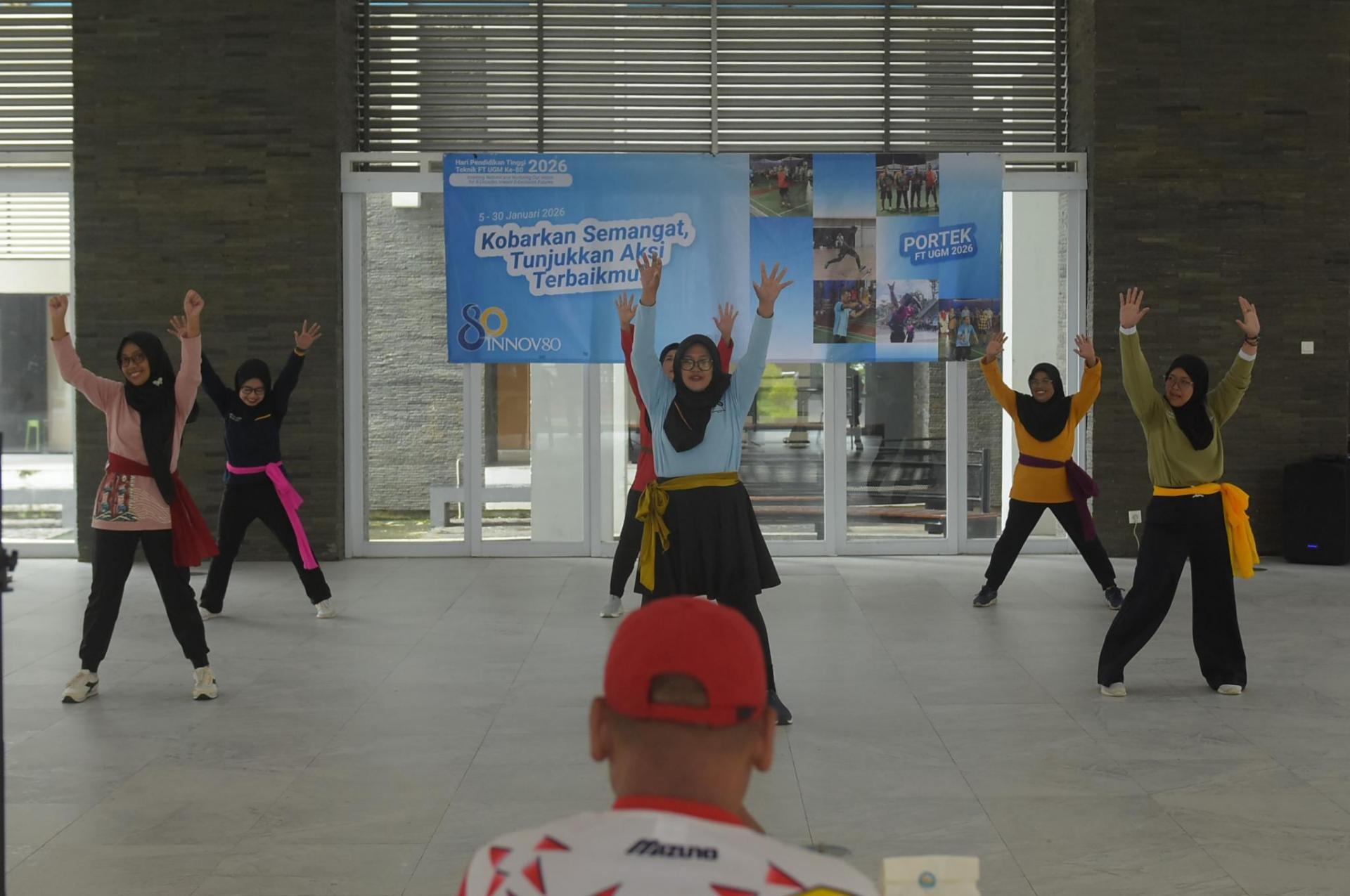 Rabu, 28 Agustus 2026, Fakultas Teknik Universitas Gadjah Mada (FT UGM) dimeriahkan alunan lagu Ta Bola Bale yang menggema di Selasar Selatan Smart Green Learning Center (SGLC). Alunan musik tersebut menandai berlangsungnya Lomba Senam Portek 2026.