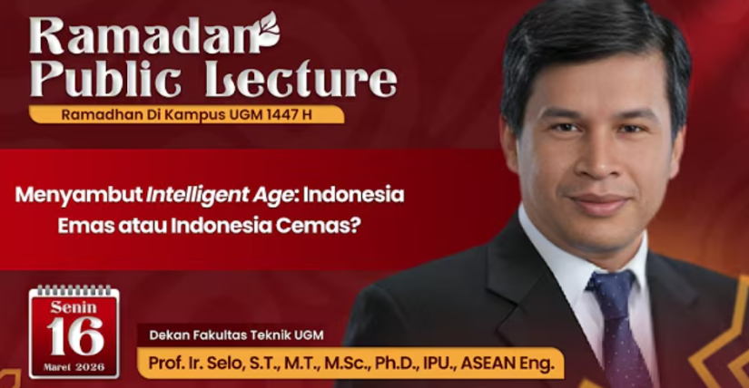 Suasana malam Ramadan 1447 H pada 16 Maret 2026 di Masjid Kampus Universitas Gadjah Mada menjadi ruang refleksi intelektual melalui public lecture Prof. Selo, Dekan Fakultas Teknik UGM. Dalam kuliah bertajuk “Menyambut Intelligent Age: Indonesia Emas atau Indonesia Cemas?”, ia mengajak mahasiswa meninjau kembali optimisme menuju Indonesia Emas 2045.
