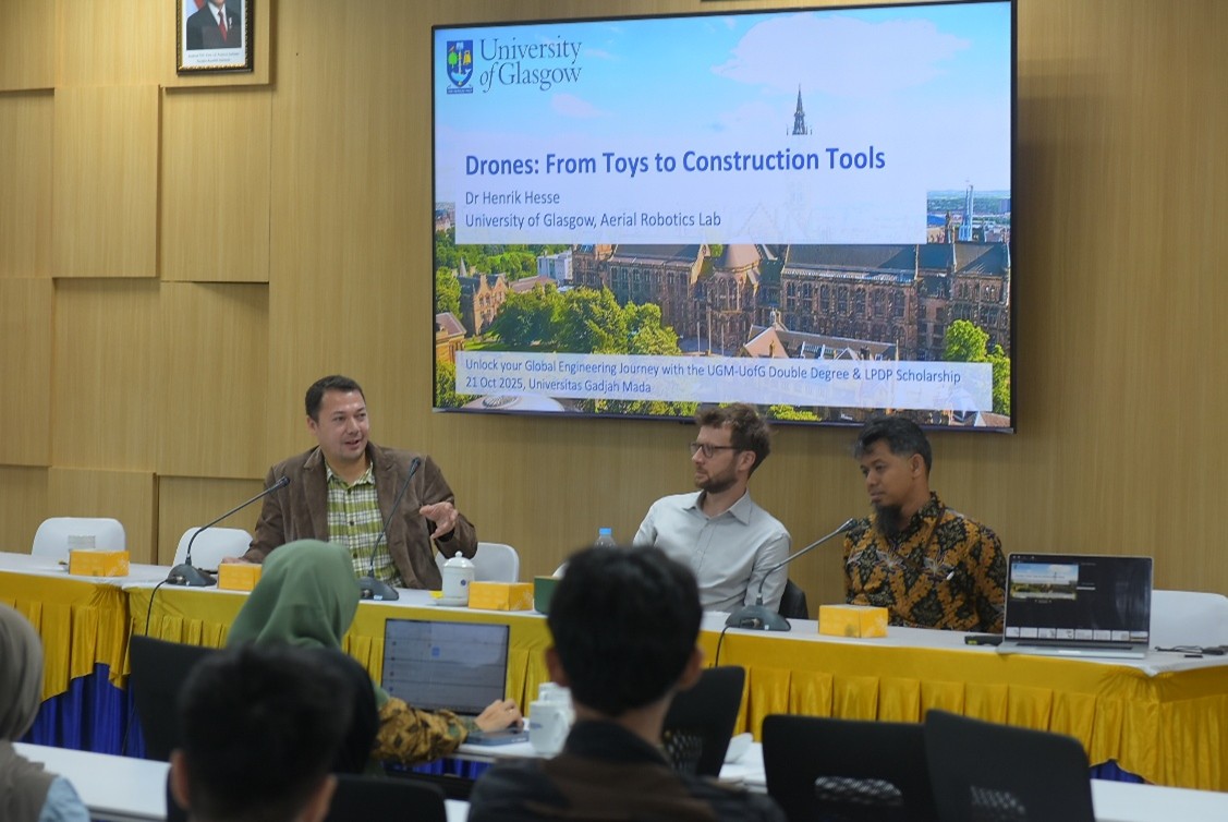 Dalam rangka meningkatkan kualitas pendidikan serta relasi internasional, Office of International Affairs, Fakultas Teknik UGM mengadakan sharing session bertajuk “Unlock Your Global Engineering Journey with the UGM-UoG Double Degree & LPDP Scholarship” pada hari Selasa, 21 Oktober 2025 di Meeting Room 1, Gedung SGLC. Forum ini diselenggarakan dalam rangka memberikan eksposur lebih luas kepada mahasiswa FT UGM untuk menilik peluang kuliah pascasarjana level master di UGM dan University of Glasgow, United Kingdom dengan dua gelar sekaligus. Forum berlangsung dengan sangat hangat dan penuh antusiasme dari puluhan peserta yang hadir.