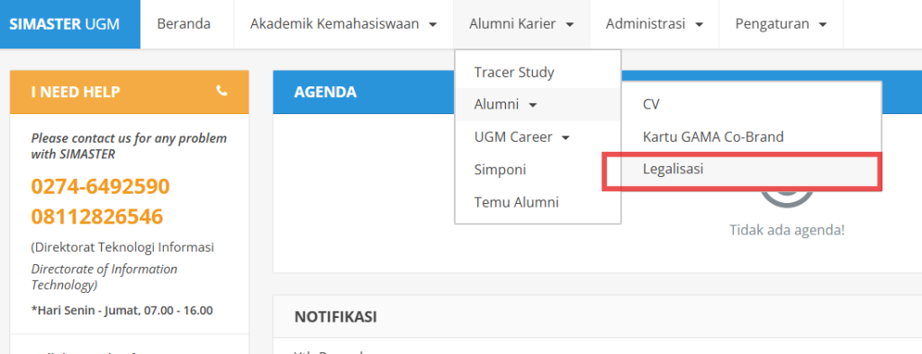 Legalisasi dilakukan melalui web Simaster, sebagai alumni. Web Simaster dapat diakses melalui http://simaster.ugm.ac.id.