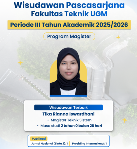 Tika Rianna Iswardhani, S.T.Tr., M.Eng., ialah sang peraih predikat lulusan terbaik program magister Fakultas Teknik Universitas Gadjah Mada (FT UGM) pada wisuda pascasarjana periode III tahun ajaran 2025/2026. Ia lulus dengan predikat cum laude dengan IPK nyaris sempurna, 3,99. Ia menempuh konsentrasi Teknik Sistem Energi Baru & Terbarukan, sebuah bidang yang kini menjadi garda depan dalam menjawab tantangan perubahan iklim dan kebutuhan energi masa depan.