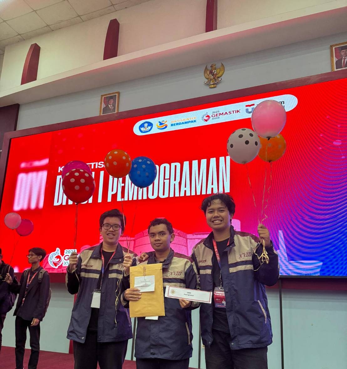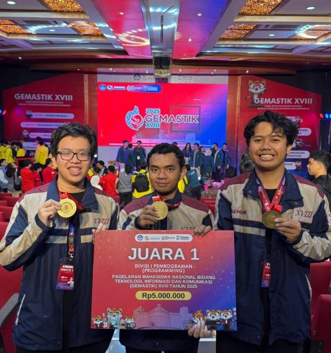 Hasil akhir menjadi kejutan menyenangkan, GMAC resmi dinyatakan sebagai peraih medali emas untuk Divisi Pemrograman GEMASTIK XVIII. Bagi ketiga anggota, kemenangan ini tidak hanya soal podium. Ada tiga pelajaran penting yang mereka bawa pulang tahun ini: pertama, berpikir lebih jauh sebelum menulis kode karena tidak semua soal sulit harus diselesaikan dengan solusi kompleks; kedua, manajemen waktu menjadi penentu ritme tim dalam bertahan atau beralih strategi; dan ketiga, kepercayaan antaranggota adalah fondasi yang menjaga stabilitas emosi di tengah ketidakpastian.