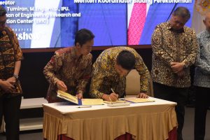 Rangkaian acara dilanjutkan dengan penandatanganan akrilik sebagai simbol serah terima, disaksikan Menko Airlangga, dan ditutup dengan sesi foto bersama. Dengan ini, hibah resmi diterima oleh Fakultas Teknik UGM sebagai penguatan fasilitas riset material maju dan energi untuk mendukung kemandirian teknologi nasional.