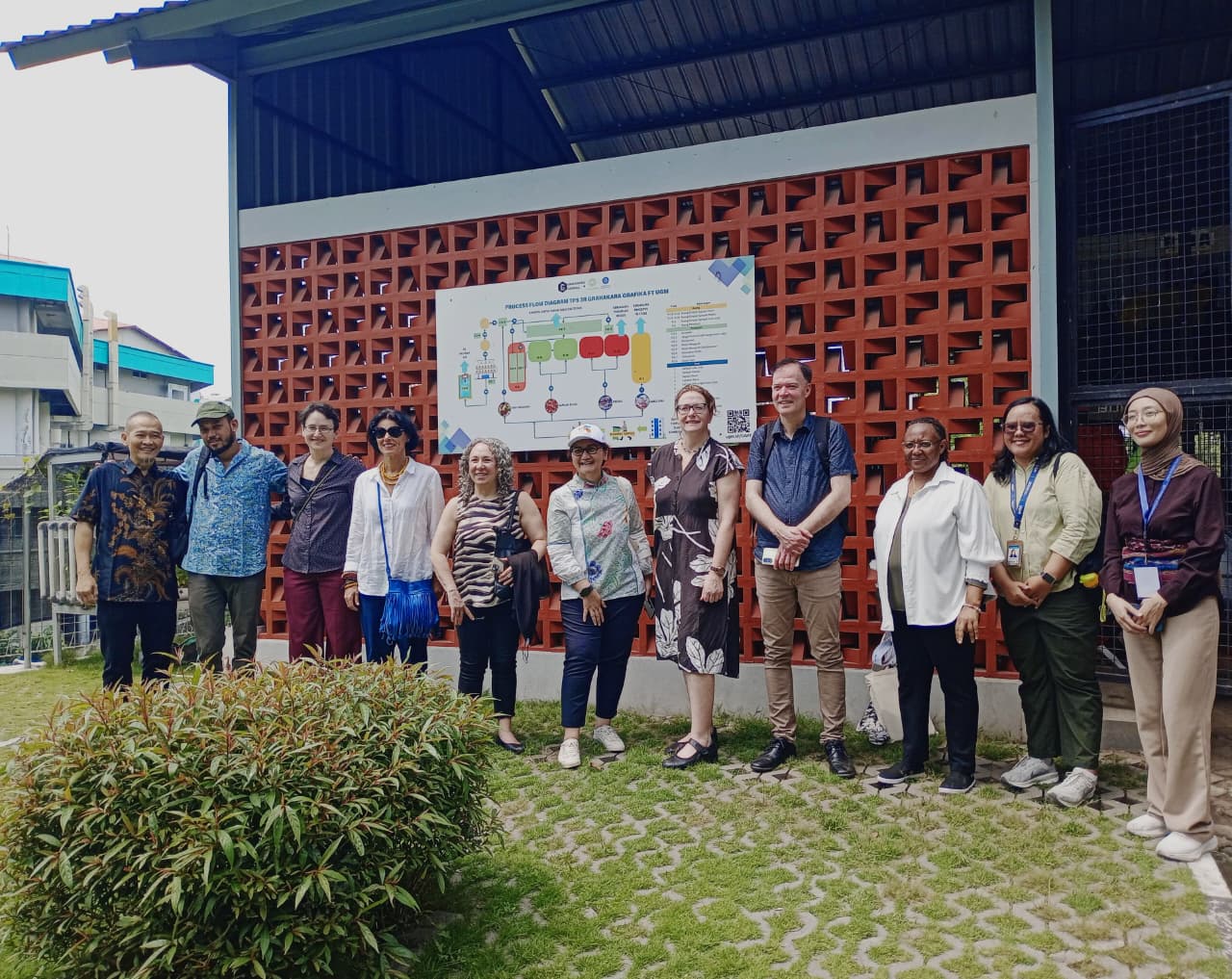 Delegasi internasional GHA Annual General Meeting 2025 asal Chile, India, Kanada, Australia, dan Kenya meninjau langsung pengelolaan sampah terpadu di TPS3R Grahara Grafika (02/10/2025)